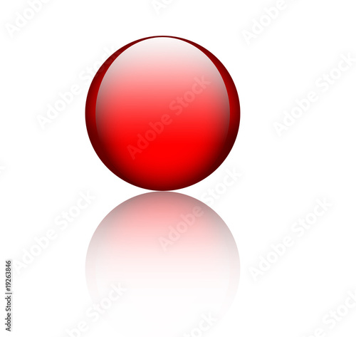 Red glass sphere with reflection over white