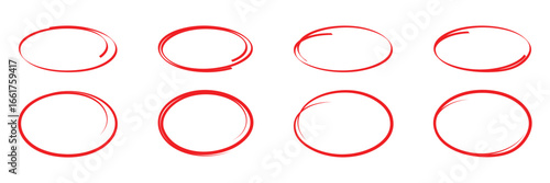 Red hand drawn circle set