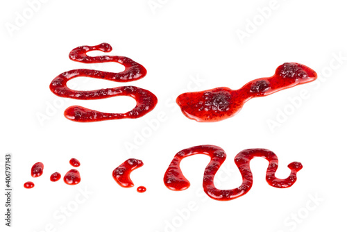 Red jam splashes isolated on white