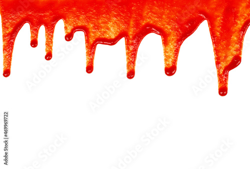 Red ketchup dripping on white background