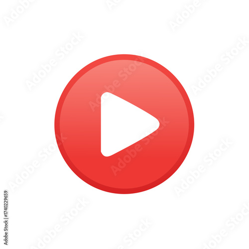 Red media player button with play icon graphic on white background