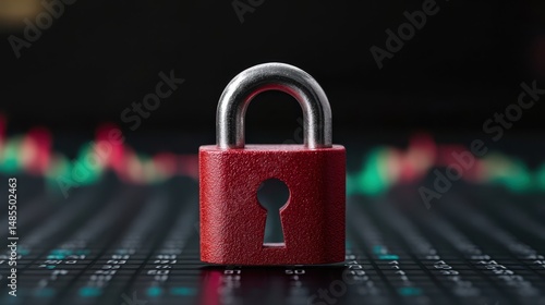 Red Padlock on Financial Data Chart Security and Cyber Protection Concept