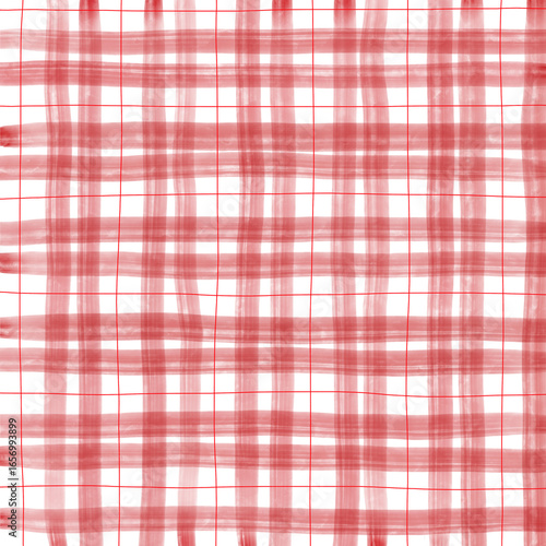 Red Plaid Gingham Check Hand Drawn Background Pattern Overlay