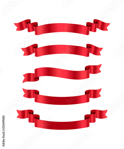 Red ribbons isolated on white background. Vector design elements.