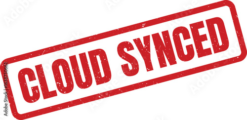 Red rubber stamp imprint stating cloud synced with a textured effect