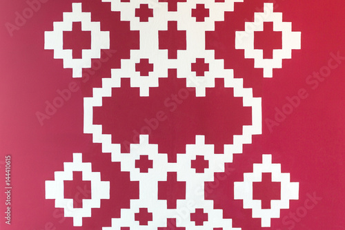 Red wall with white squares.
