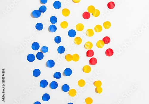 Red Yellow Blue Paper Circles Scattered On White Backgrounds Design Image Colorful Pattern Image Design Image Abstract Backgrounds Geometric Pattern Minimal Design Colorful Confetti Scattered Circles