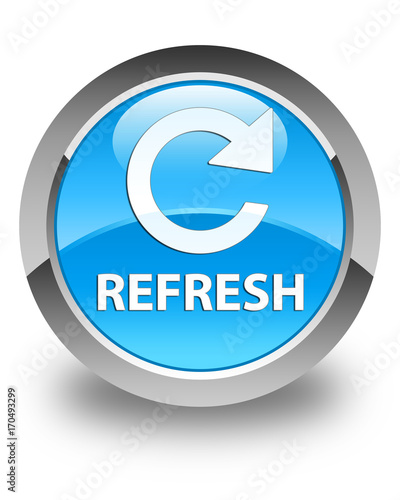 Refresh (rotate arrow icon) glossy cyan blue round button