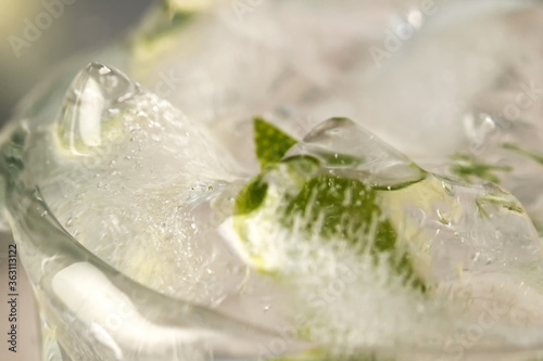 Refreshing lemonade with slices of lime