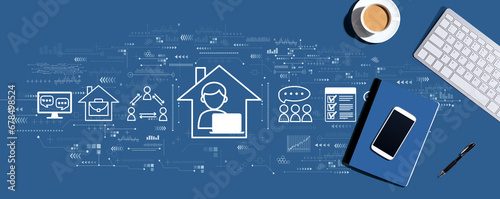 Remote Work theme with a computer keyboard and office items
