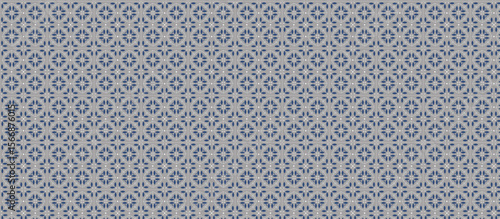 Repeating Grid Pattern of Small Geometric Floral Motifs in Dark Gray and Off-White on Light Gray Background with Visible Grout Lines, Creating a Subtle Tessellation Tile Effect for Decorative Use