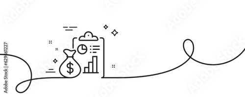 Report line icon. Continuous one line with curl. Accounting clipboard document sign. Budget info symbol. Report single outline ribbon. Loop curve pattern. Vector