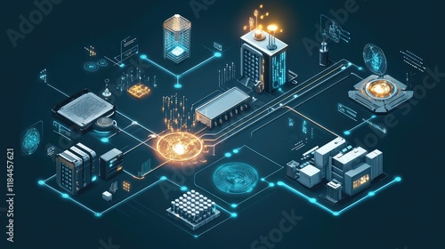 Representation of quantum AI collaboration, with quantum computers feeding data to AI systems for advanced machine learning and analytics