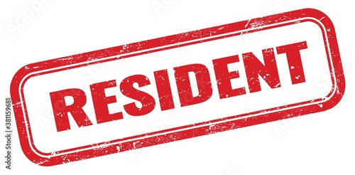 RESIDENT red grungy rectangle stamp.