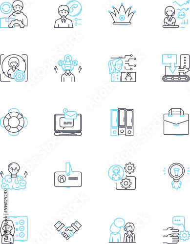 Resource management linear icons set. Allocation, Optimization, Distribution, Efficiency, Planning, Utilization, Scheduling line vector and concept signs. Capacity,Prioritization,Integration outline