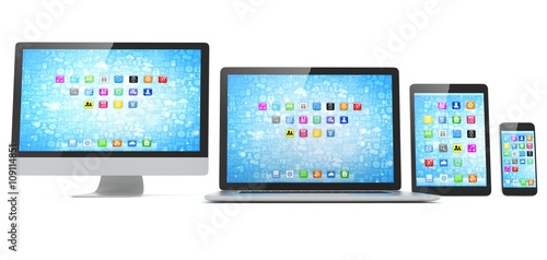 Responsive web design, laptop, smartphone, tablet, computer, display. 3d rendering.