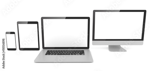 Responsive web design, laptop, smartphone, tablet, computer, display. 3d rendering.