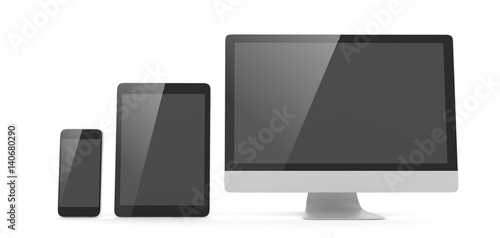 Responsive web design, laptop, smartphone, tablet, computer, display. 3d rendering.