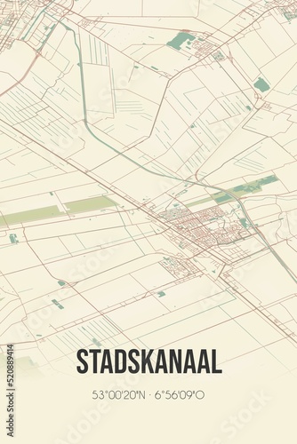Retro Dutch city map of Stadskanaal located in Groningen. Vintage street map.