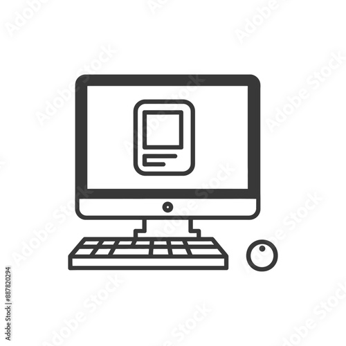Retro Gaming Emulator on Desktop Computer: Line Art Icon