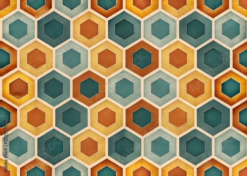 Retro hexagon pattern. warm earthy tones.
