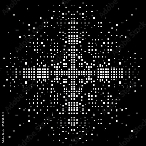 Retro Pixelated Organic Design | Visible Pixels, Clear Grid Structure, Black Background