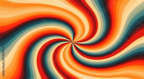 Retro Swirl Pattern with Warm Orange, Red, Teal, and Yellow Stripes abstract background