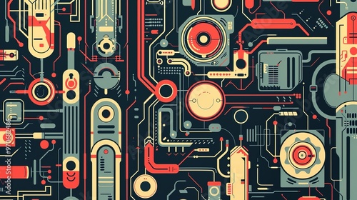 Retro tech pattern wallpaper