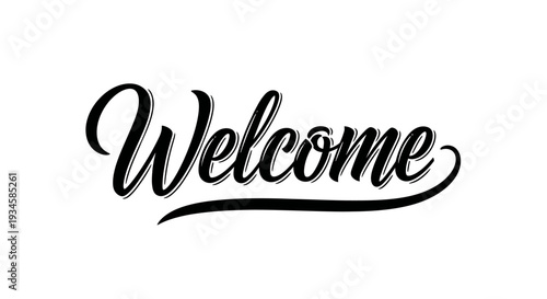 Retro Vintage Style Welcome Script Text on Isolated White Background