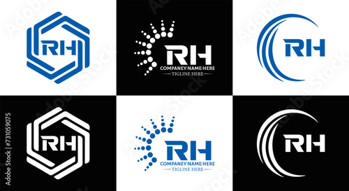 RH logo. RH set , R H design. White RH letter. RH, R H letter logo design. Initial letter RH letter logo set, linked circle uppercase monogram logo. R H letter logo vector design.