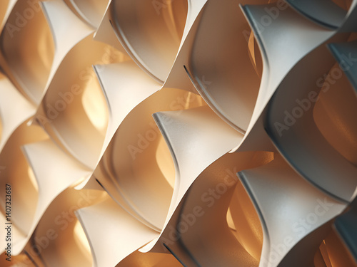 Rising paper structures form geometric shapes with light filtering gently through casting patterns