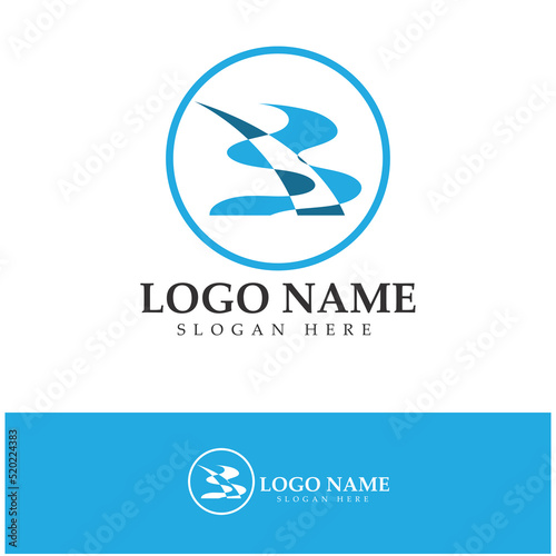 River mountain sun Logo vector icon illustration design template