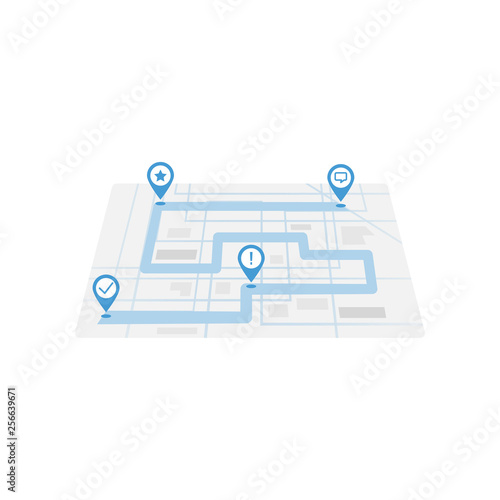 Road map scheme with different marks in simple style isolated on white background