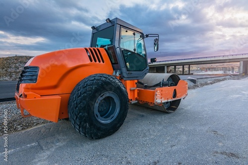 Road roller making maintenance work on a road