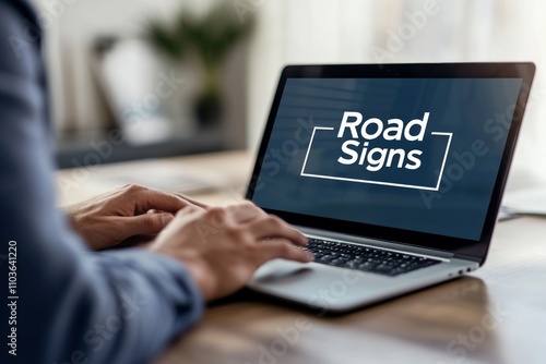 Road Signs Displayed on Laptop Screen