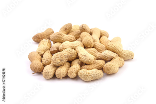 Roasted peanuts in shell isolated on white