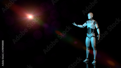 robot, artificial intelligence cyborg on a dark and shiny stage