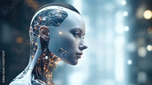 Robot cyber girl, Futuristic robot with artificial intelligence, Artificial intelligence with a digital brain is learning to process big data.