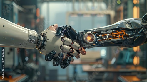 robot shakes hands with robot