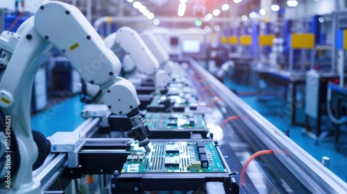 Robotic Arms Assembling Circuit Boards in a Modern Factory: A Glimpse into Automated Manufacturing