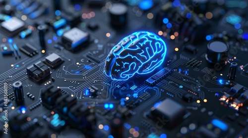 Robotic brain with brain chipset networking. AI, IT engineering, future concept design