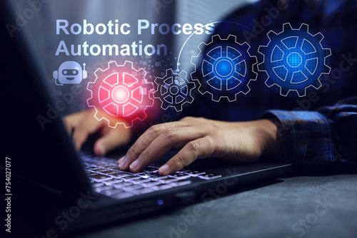 Robotic process automation RPA concept with programmer working on laptop computer to setting the system operation