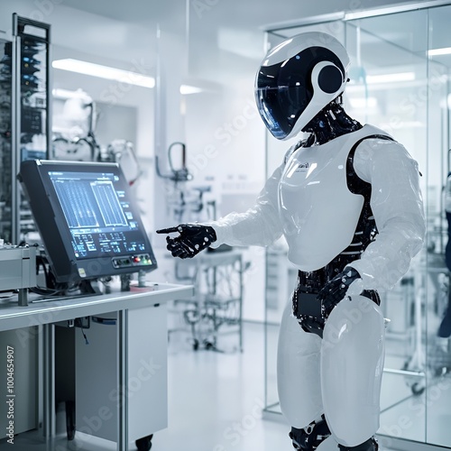 Robotics Engineer Testing Humanoid Robot in Lab