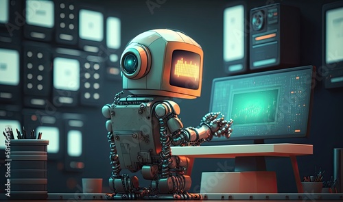 Robotics using multiple computers working and monitor data in liveing modern room , Generative Ai