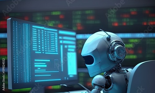 Robotics using multiple computers working and monitor data in liveing modern room , Generative Ai