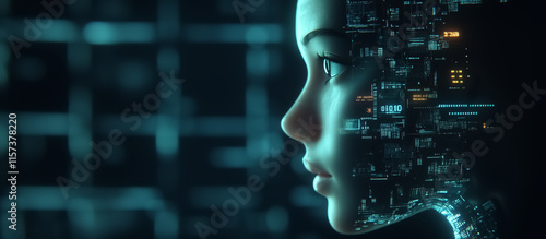 Robot's face with digital circuitry visible in the background symbolizing its advanced technology and complexity