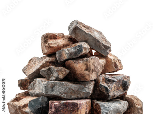 Rock pile display natural material view solid structure isolated on transparent background