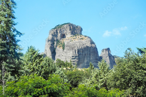 Rock with empty hermit cave. Meteora, Greece.