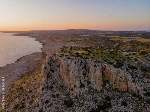 Rocky Cliffs and Turquoise Mediterranean Waters in Cyprus at Sunset