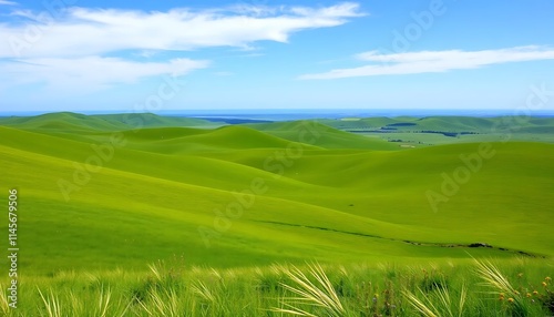 Rolling Green Hills Under a Summer Sky